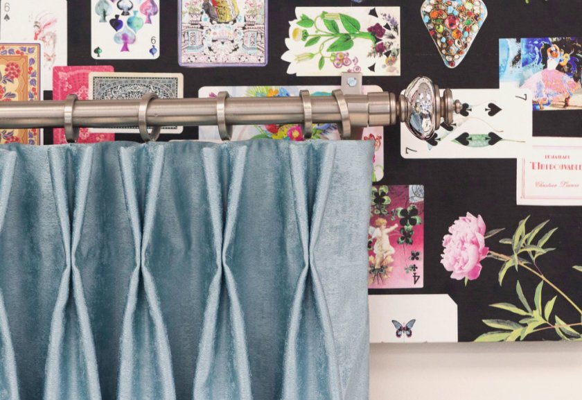 Workrooms and designers seem to have dozens of names for the most popular pinch pleats and header finishes. We’ve made samples of a few of our favorite and made this glossary below.